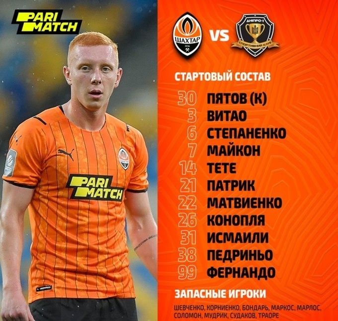 Шахтер: Пятов, Конопля, Матвиенко, Витао, Исмаили, Степаненко, Майкон, Алан Патрик, Тете, Педриньо, Фернандо