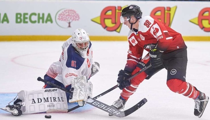 Шайбы: 00:56 Бьеррум (Розенталь, Мюллер) - 1:0, 29:17 Писон (Андерсон, Йенсен) - 2:0, 33:10 Медведев - 2:1, 41:06 Дэйли (Розенталь, Густафссон) - 3:1, 44:09 Пересунько (Морозов, Бирюков) - 3:2, 46:13 Жулдиков (Сигарев) - 3:3, в овертайме 01:00 Густафссон - 4:3