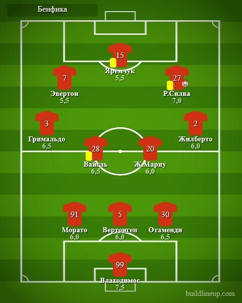 Замены «Бенфики»: Радоньич – 5,5; Нуньес – 5,5; Лазаро – 5,5; Таарабт – б/о; Пицци – б/о.