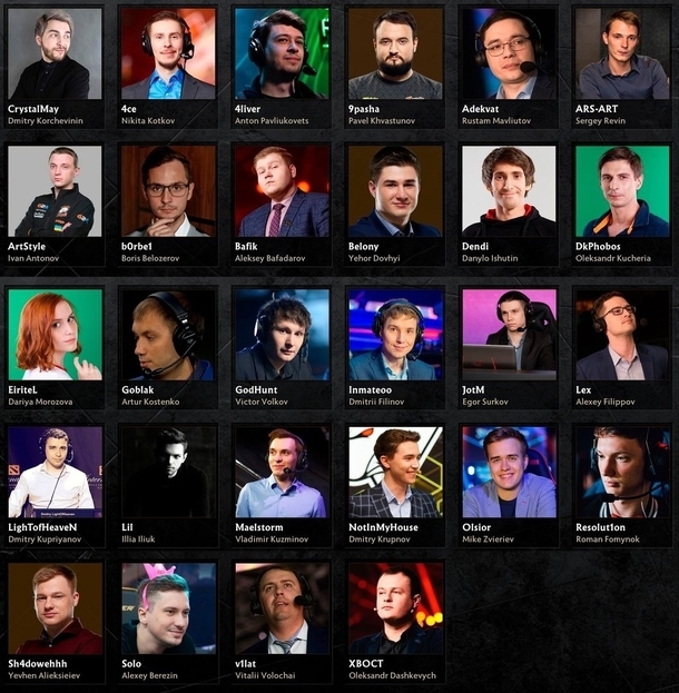 Среди участников — Данил Dendi Ишутин, Александр XBOCT Дашкевич, Алексей Solo Березин, Роман Resolut1on Фоминок и другие.