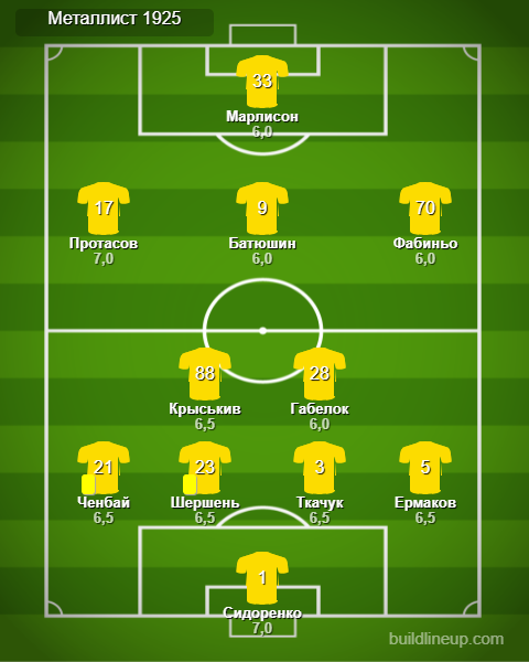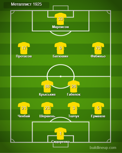 «Металлист 1925»: Сидоренко, Ермаков, Ткачук, Шершень, Ченбай, Габелок, Протасов (Ременюк, 73), Фабиньо (Савин, 79), Крыськив, Батюшин, Марлисон.