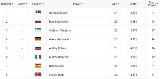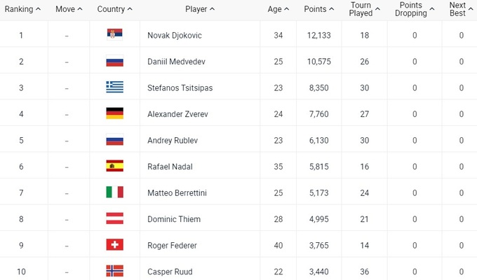Топ-10 рейтинга ATP