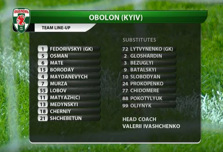 «Оболонь»: Федоривский, Осман, Мате, Бородай, Майданевич, Мурза, Матяж, Мединский, Черний (Батальский, 61), Щебетун.