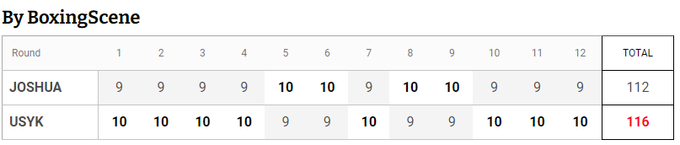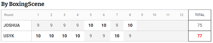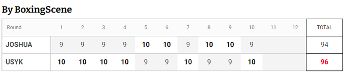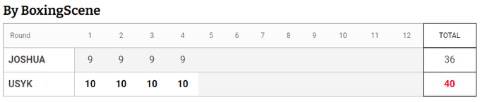 00:31. Эксперты BoxingScene отдают перевес Усику во всех раундах: 40–36.