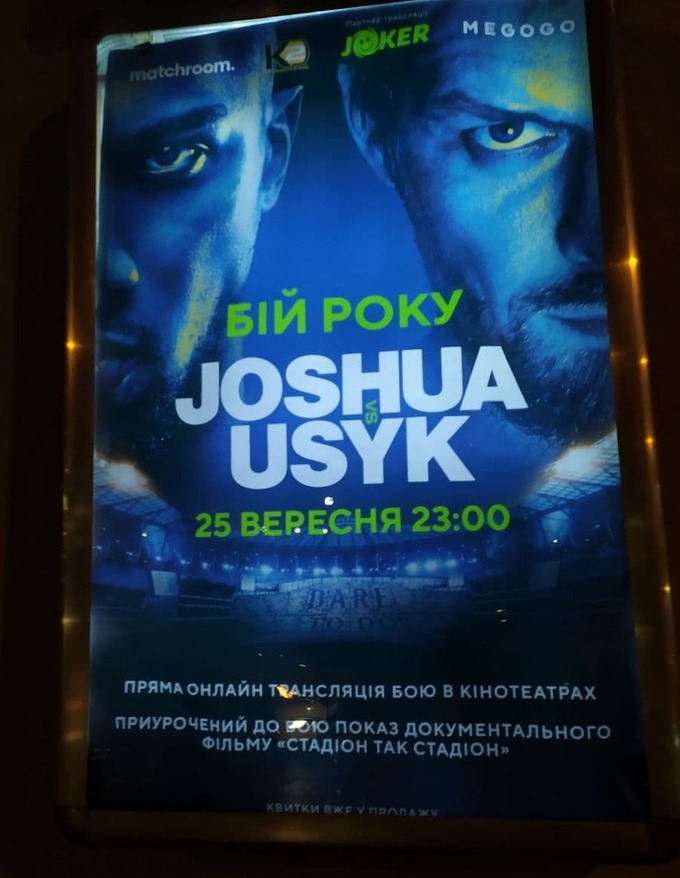 22:50. Бой Усика можно посмотреть даже в кинотеатрах Украины.