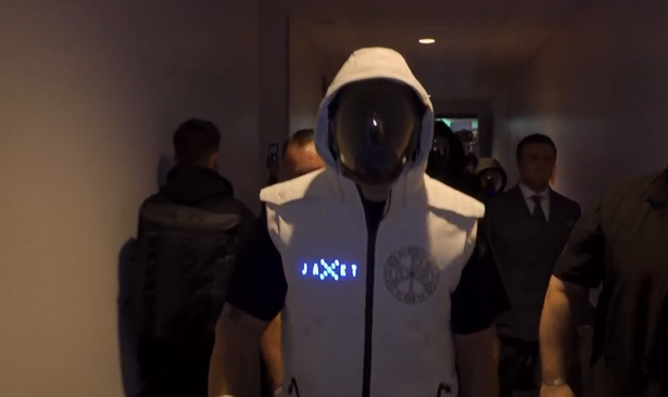 00:03. Усик выходит на ринг в скафандре! Большой привет Илону Маску!
