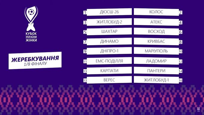 Стали известны все пары 1/8 финала Кубка Украины среди женских команд