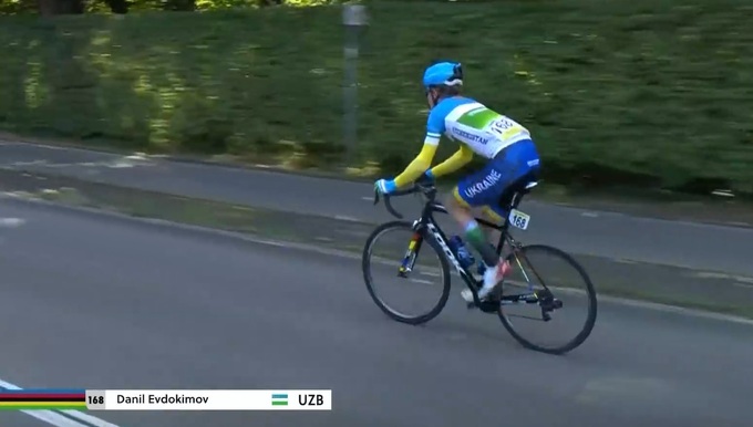 Гонщик сборной Узбекистана Даниил Евдокимов несколько раз попал в кадр благодаря своей необычной экипировке. Майка у него сборной Узбекистана, а вот велотрусы, по неизвестной причине, – сборной Украины: