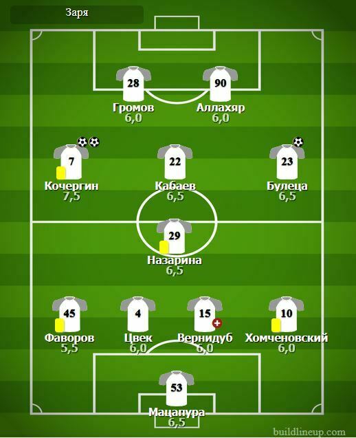 Замены «Зари»: Имереков - 6,5; Шахаб