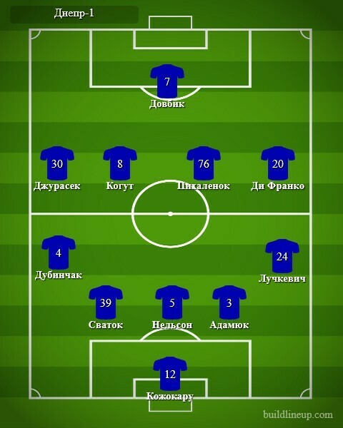 «Днепр-1»: Кожокару, Лучкевич (Кравченко, 57), Адамюк, Сваток, Нельсон, Дубинчак, Пихаленок, Ди Франко (Чуже, 65), Джурасек, Довбик, Когут.