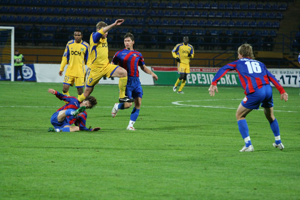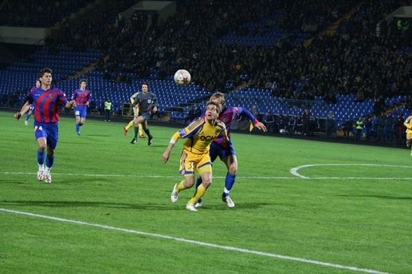 Более-менее реальный момент для взятия ворот был у Коэльо на 41 минуте. Находясь у правого угла штрафной, он неожиданно пробил по воротам. Рева явно не ожидал этого удара и как-то неуклюже отбил этот мяч на угловой. В конце тайма соперники еще раз обменялись ударами по воротам, которые голкиперов вовсе не напугали. Симоненко с 25 метров пробил выше ворот, а Девич со штрафного пробил, хотя и точно, но недостаточно сильно, и голкипер без труда отвел угрозу.