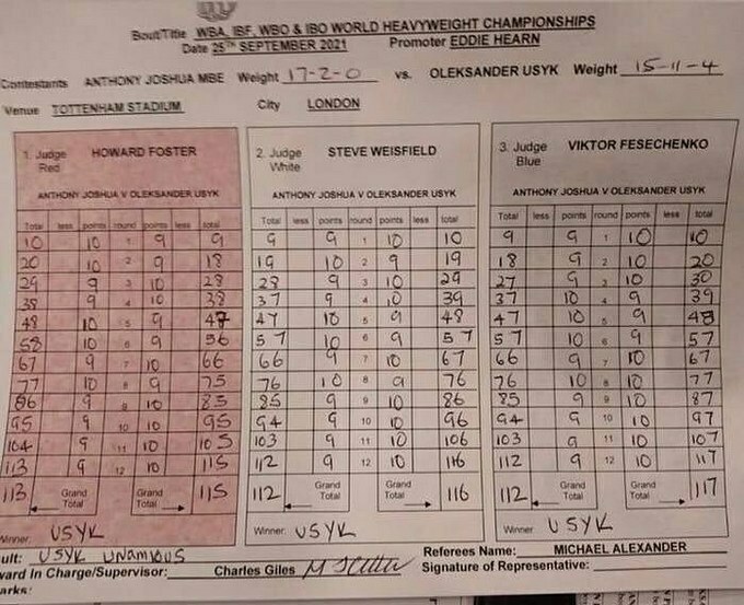 ФОТО. Явное преимущество. Судейские записки поединка Джошуа — Усик