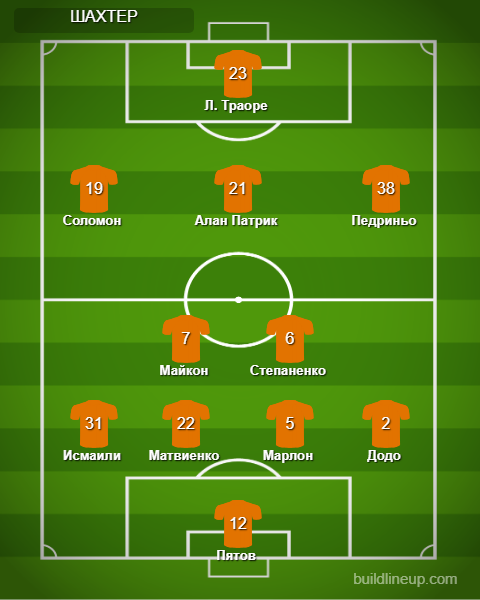 «Шахтер»: Пятов - Додо, Марлон, Матвиенко, Исмаили (Кривцов, 78) - Степаненко, Майкон - Педриньо, Алан Патрик (Марлос, 85), Соломон (Мудрик, 78) - Траоре (Тете, 14).