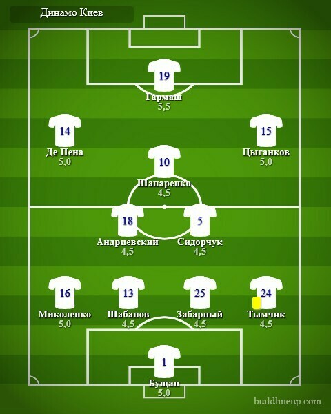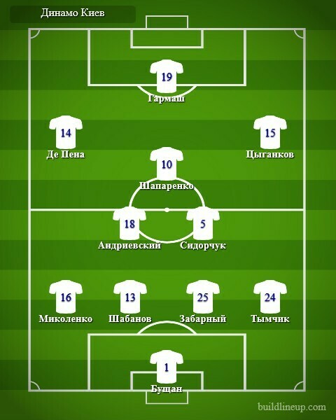 «Динамо»: Бущан, Миколенко, Шабанов, Забарный, Тымчик (Кендзера, 46), Сидорчук, Андриевский, Шапаренко (Шепелев, 46), Де Пена, Цыганков (Караваев, 70), Гармаш (Супряга, 70).