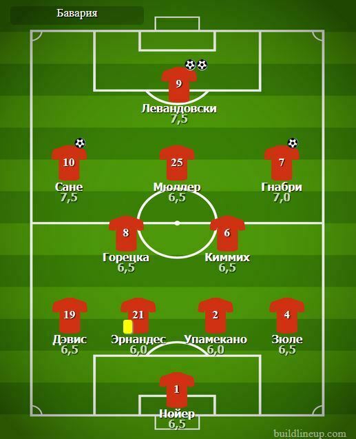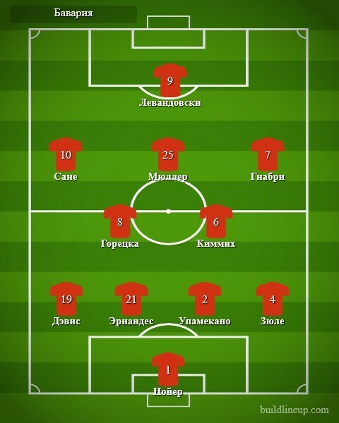 Левандовски (12, пенальти, 27), Гнабри (68), Сане (74), Шупо-Мотинг (87)