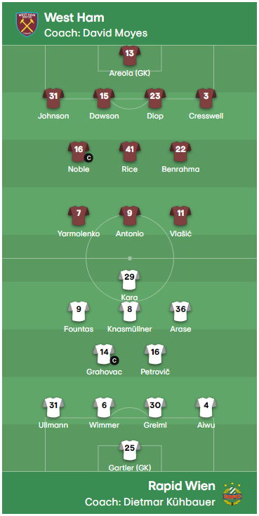 Here's how we line up tonight against Rapid Vienna... ⚒#UEL | #WHUSCR pic.twitter.com/klKhZJvwD2