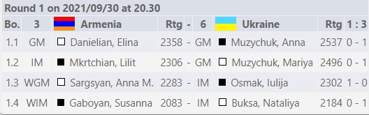 В четвертьфинале сборная Украины с трудом одолела команду Армении. В первой игре украинки проиграли (1:3), во втором матче сумели отыграться (3,5:0,5). В решающих партиях с укороченным контролем (блиц-игра) украинки победили со счетом 3:1 и получили путевку в полуфинал.