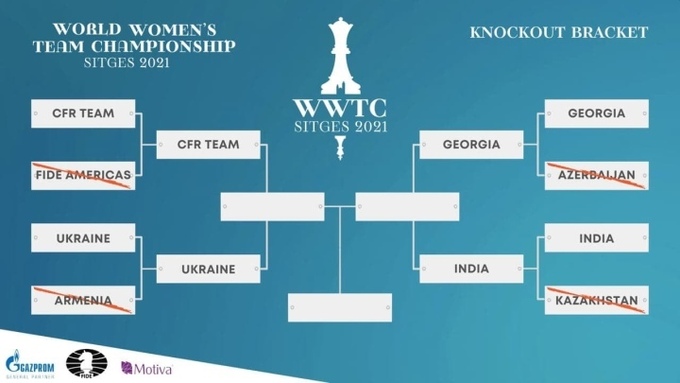 Женская сборная Украины сыграет против команды России в полуфинале командного чемпионата мира 2021 по шахматам. Соревнования проходят в Ситжесе (Испания).