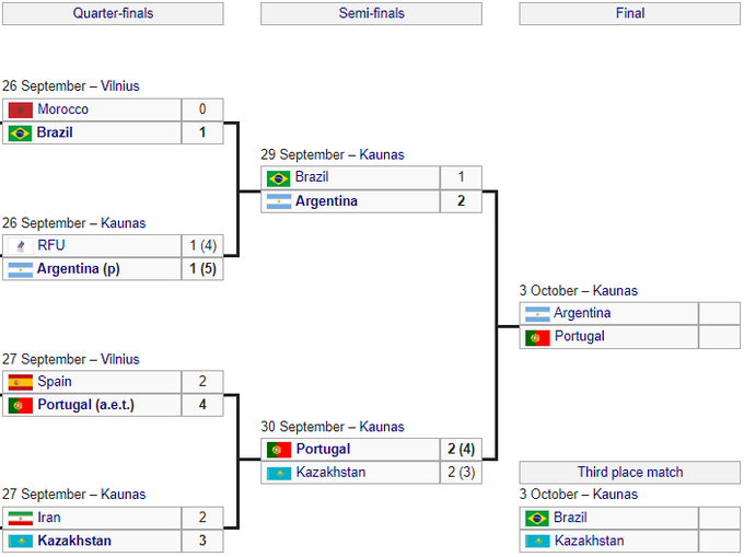 В финале 3 октября Португалия сыграет с Аргентиной, обыгравшей Бразилию