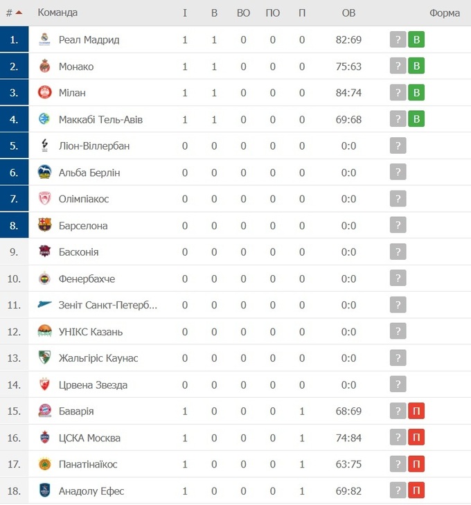 Стартовал регулярный чемпионат баскетбольной Евролиги. В стартовом туре «Реал» уверенно разобрался с «Анадолу Эфесом», а московский ЦСКА неожиданно уступил «Милану».
