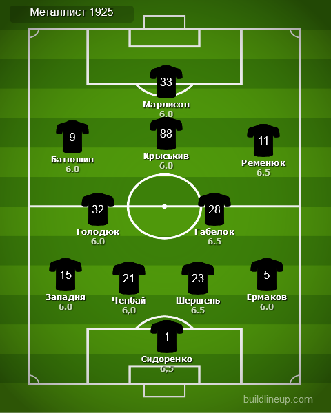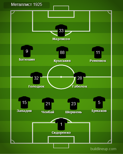 «Металлист 1925»: Сидоренко, Ермаков, Шершень, Ченбай, Западня, Габелок, Ременюк, Крыськив, Голодюк (Протасов, 65), Батюшин, Марлисон (Зубков, 65)