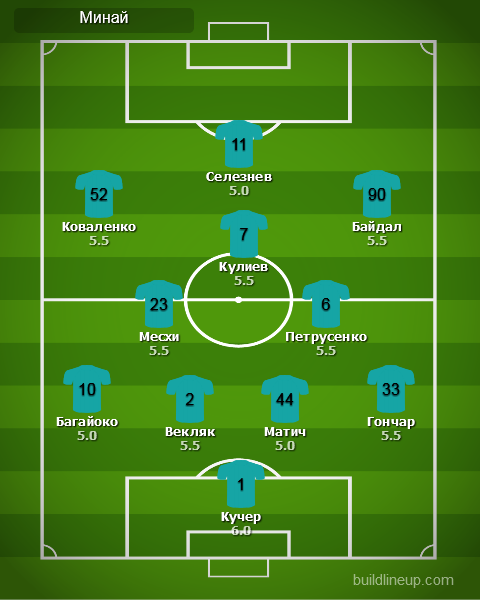 Замены «Минай»: Синегуб - 5,5, Ахмедзаде - 5,5, Кобак - 5,5, Хахлев - б/о.