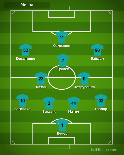«Минай»: Кучер, Б.Коваленко (Ахмедзаде, 59), Гончар, Байдал, Матич, Петрусенко, Багайоко (Синегуб, 46), Кулиев, Векляк, Месхи (Хахлев, 85), Селезнев (Кобак, 71)