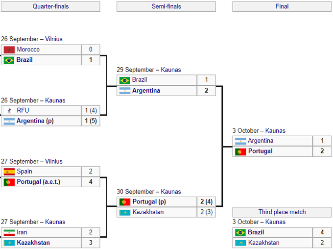 Бронзовые медали получила команда Бразилии, победившая сборную Казахстана