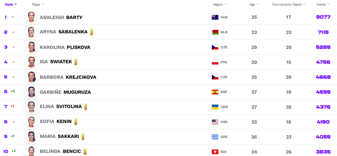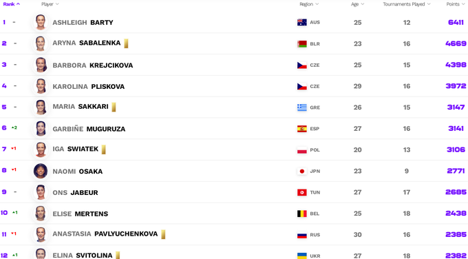 Также стоит отметить вылет из первой десятки Наоми Осаки из Японии.