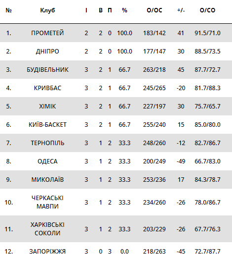 В турнирной таблице лидируют «Прометей» и «Днепр», одержавшие по 2 победы.