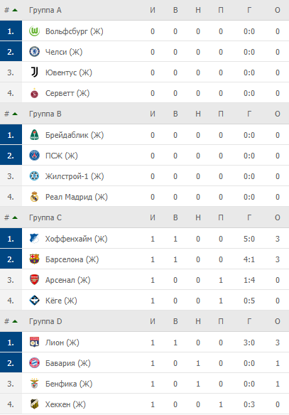 Турнирные таблицы ЛЧ