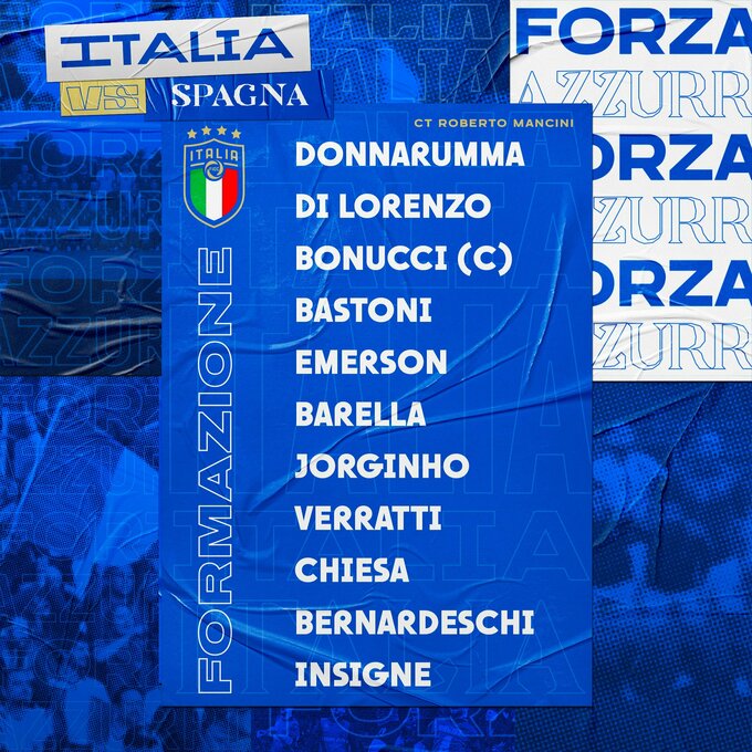 Запас: Сиригу, Мерет, Кьеллини, Калабрия, Локателли, Пеллегрини, Распадори, Берарди, Димарко, Ачерби, Кристанте, Кин.
