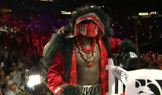 06:46. Уайлдер выходит на ринг! Бронзовый бомбардировщик! Крутой костюм!