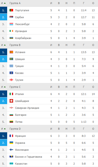 Квалификация ЧМ-2022. Все результаты игрового дня и турнирные таблицы