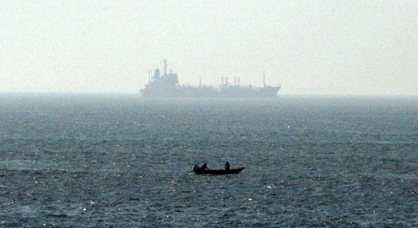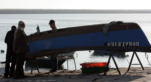 Капиталистические акулы и скромный рыбак или даже robaleiro, как и написано у него на лодке.