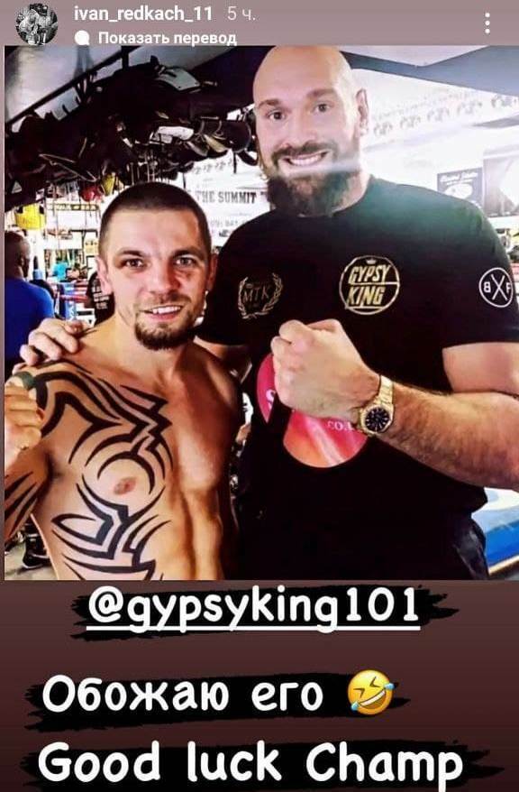 «Обожаю его. Удачи, чемпион», — прокомментировал Редкач совместное фото с Фьюри.
