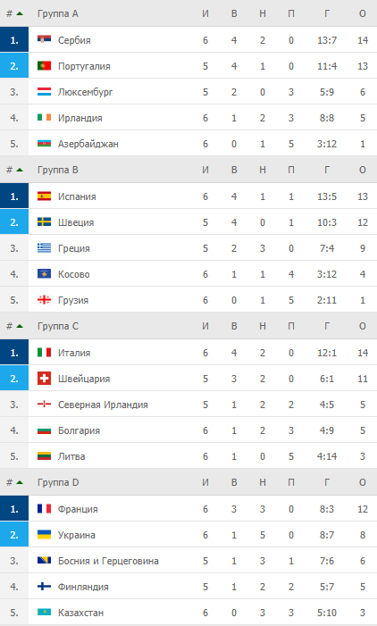 Основным конкурентом в борьбе за вторую позицию является Босния и Герцеговина (6 пунктов после 5 поединков), с которой сине-желтые проведут два своих заключительных матча в группе D. Не потеряла шансов на плей-офф и Финляндия (5 очков, 5 игр).