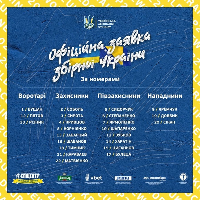 Без Пихаленка. Украина опубликовала заявку на матч с Боснией и Герцеговиной