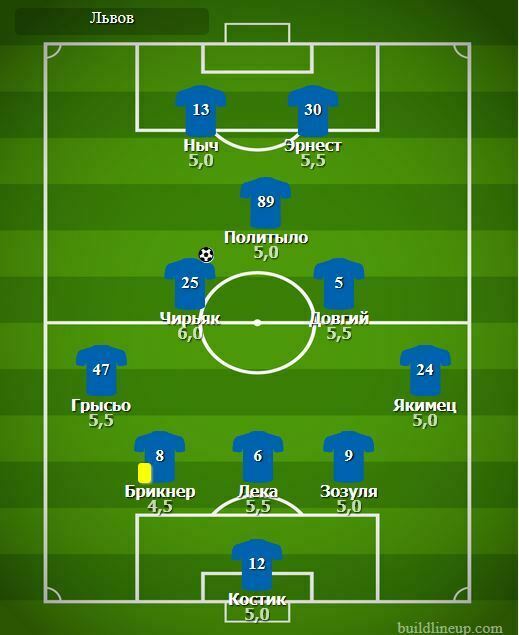 Замены «Львова»: Шина - 5,0; Альваро - 5,0; Ременяк - 5,5; Крушинский - б/о; Сорокин - б/о.