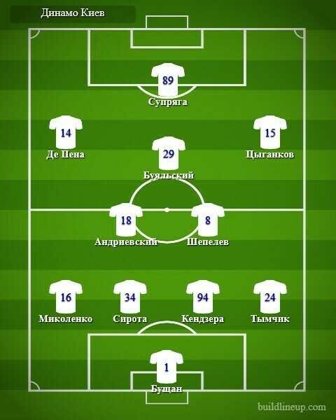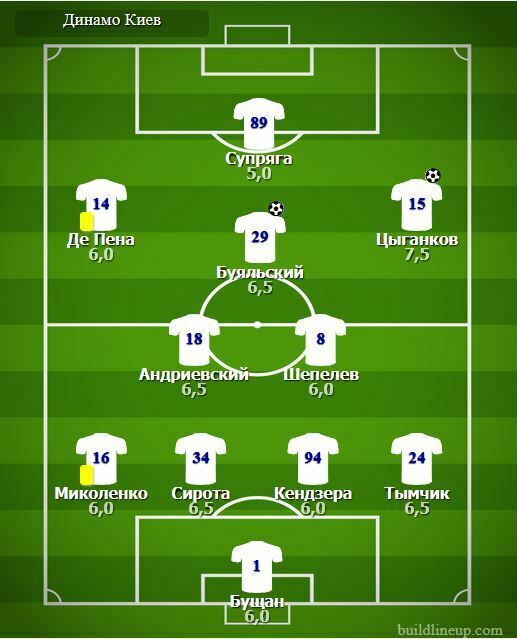 «Динамо»: Бущан, Миколенко (Караваев, 46), Сирота (Шабанов, 74), Кендзера, Тымчик, Шепелев, Андриевский, Де Пена (Витиньо, 46), Цыганков (Вербич, 74), Буяльский, Супряга (Гармаш, 41).