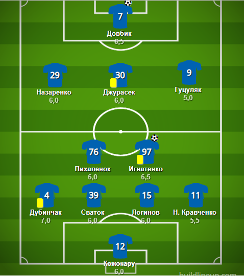 Замены «Днепра-1»: ди Франко - 5,5, Чуже - 5,5, Ярмолюк - б/о, Билл - б/о.
