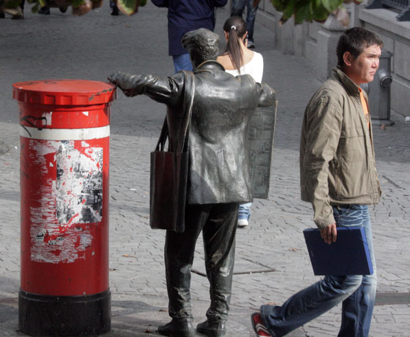 Это или памятник разносчику газет, или просто на дядечку посмотрела Медуза Горгона.