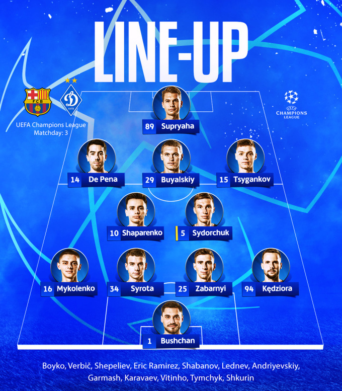 Сегодня в 19:45 «Динамо» на выезде начнет матч против «Барселоны» в рамках 3-го тура группового этапа Лиги чемпионов.