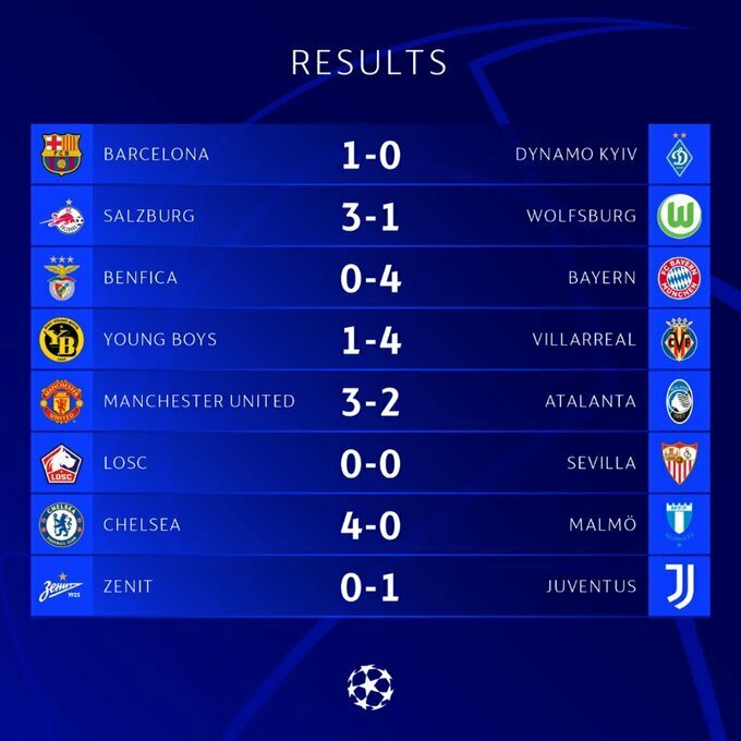 Ниже приведены результаты игрового дня и турнирные таблицы ЛЧ.