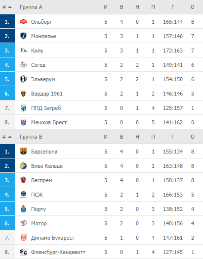 - Барселона (Испания) – ПСЖ (Франция) – 30:27 (13:13)