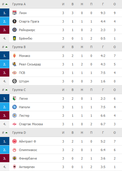 - Наполи (Италия) – Легия (Польша) – 3:0