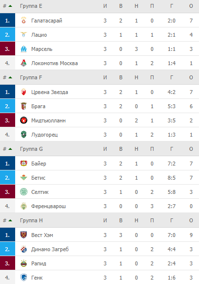 21 октября прошли матчи 3-го тура группового этапа Лиги Европы