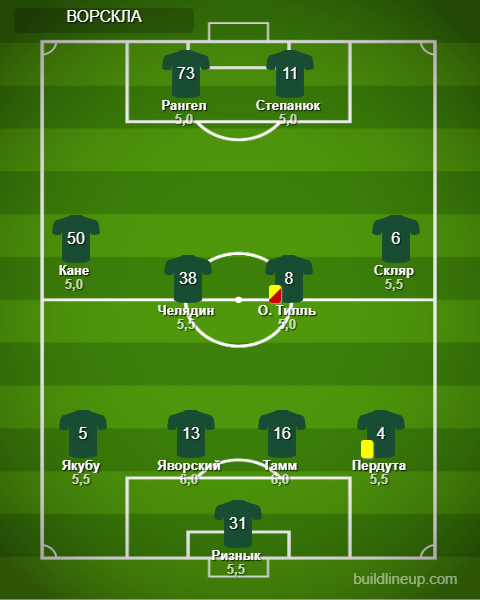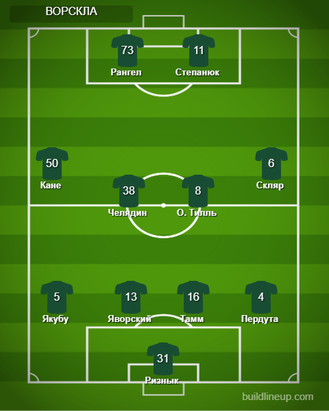 «Ворскла»: Ризнык - Пердута, Тамм, Яворский, Якубу - Скляр (Пешич, 49), Челядин (Павлюк, 90+1), О. Тилль, Кане - Степанюк (Крупский, 90+1), Рангел (Амилькар, 90+1).