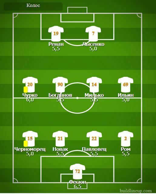 «Колос»: Фесюн, Ром, Павловец, Новак, Черноморец, Чурко (Ситчинава, 73), Милько, Богданов (Нуриев, 85), Ильин (Велетень, 85), Ренан (Костышин, 58), Лысенко.