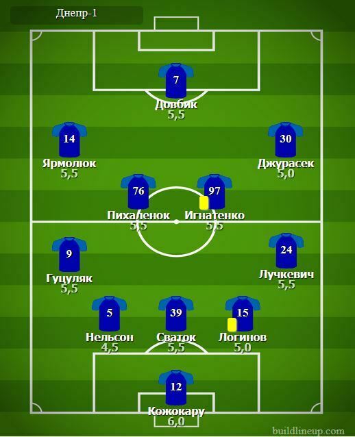 Замены «Днепра-1»: Адамюк – 5,5; Назаренко – 5,0; Чуже – б/о; Билл – б/о.